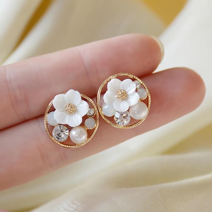 ピアス 花 モチーフ 可愛い ホワイト 白い 丸い レディース アクセサリー 女性 可愛い デザイン ジルコン フラワー パール イヤリング エレガント 232 69 A B Outlet 通販 Yahoo ショッピング
